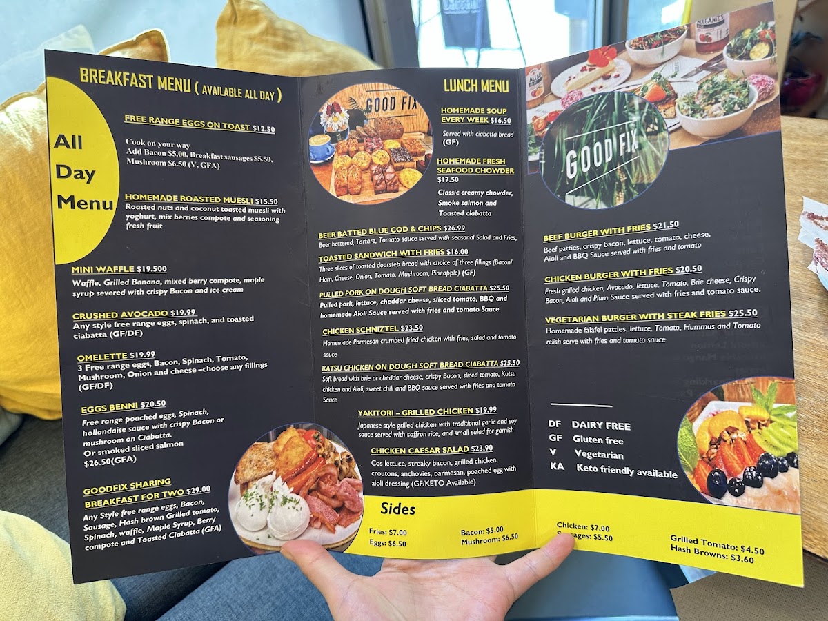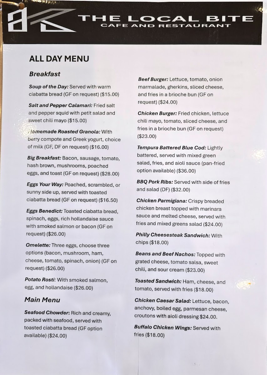 The menu is structured to cater to a range of meal occasions including breakfast and light to moderate meals throughout the day. Visitors typically use the menu for casual dining, with options suitable for quick ordering or more relaxed meals.